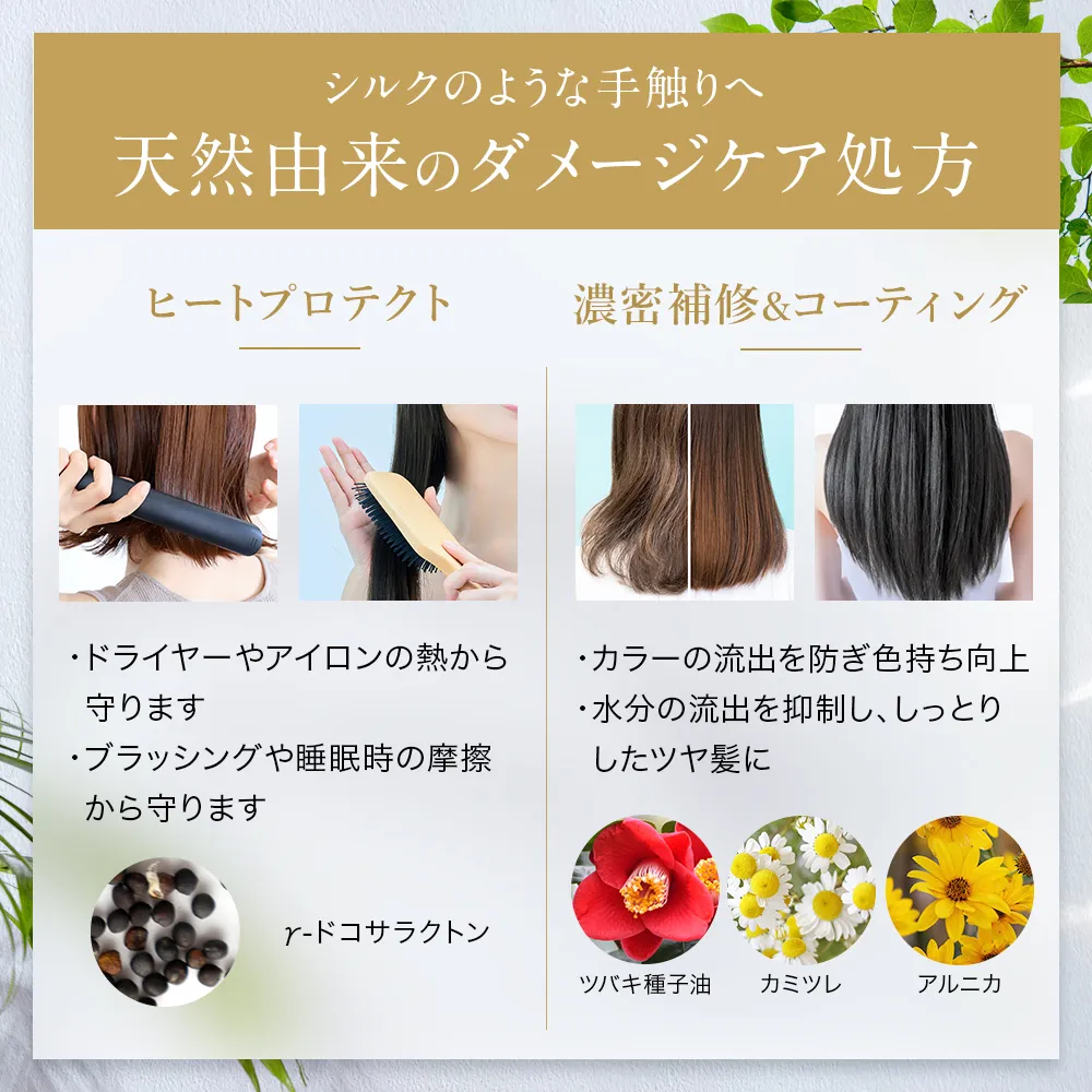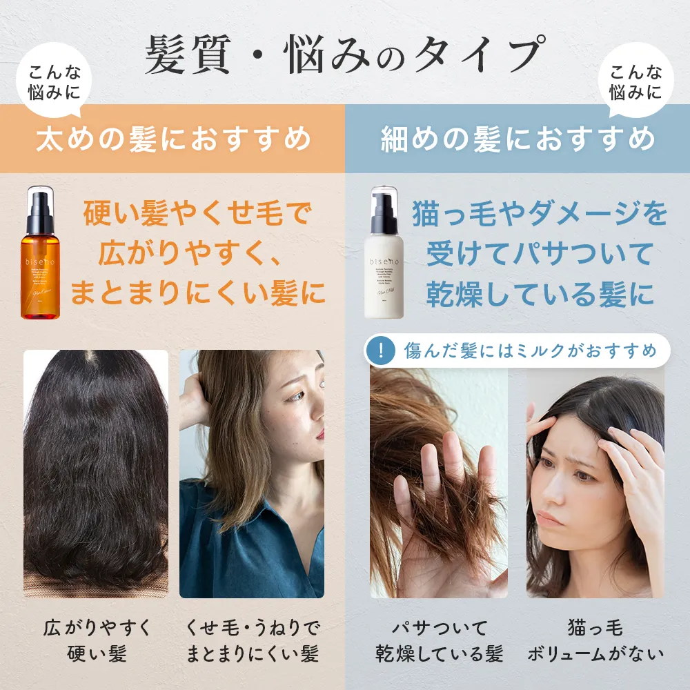 コームや手櫛で髪をすいて、ドライヤーで乾かします。ダメージによってパサつきが気になる方は、ドライヤー後に再度塗布して質感を調整してください。
