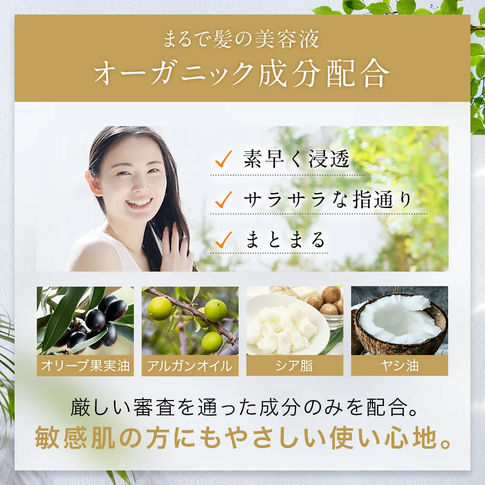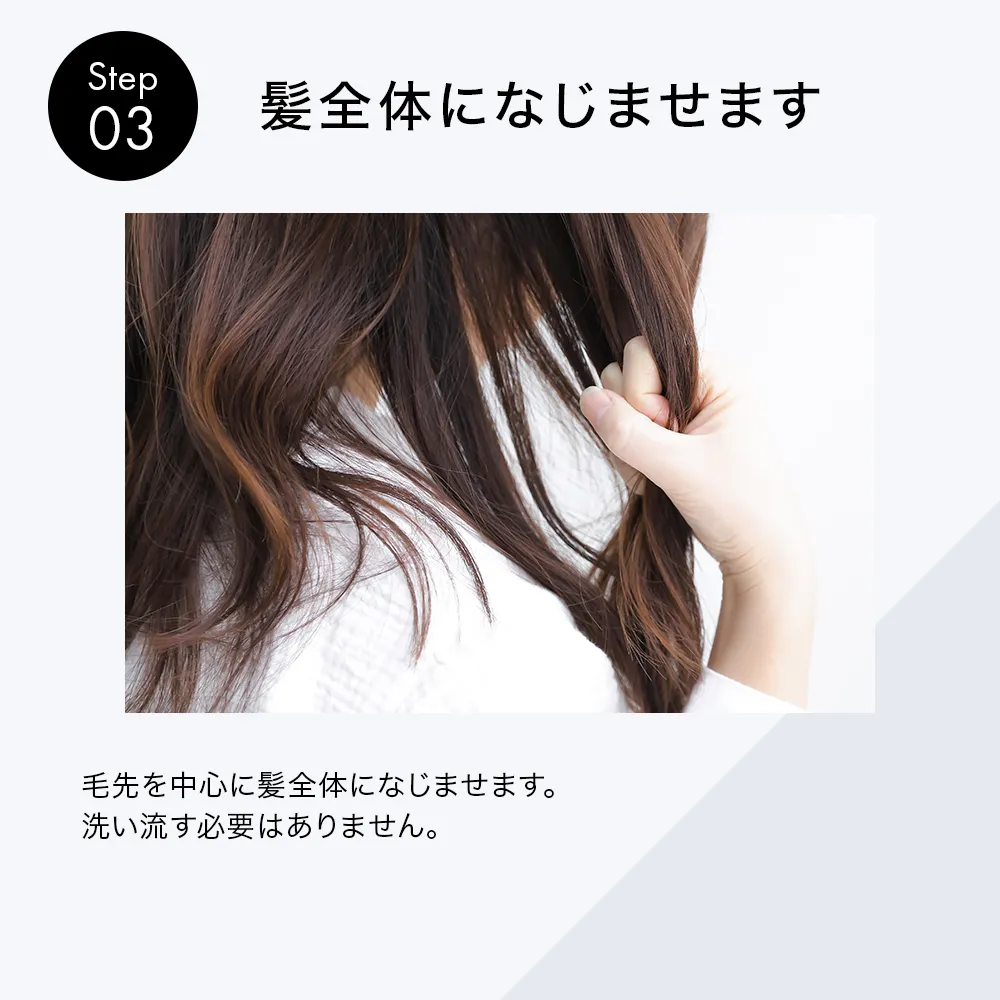 毛先を中心に髪全体になじませます。洗い流す必要はありません。